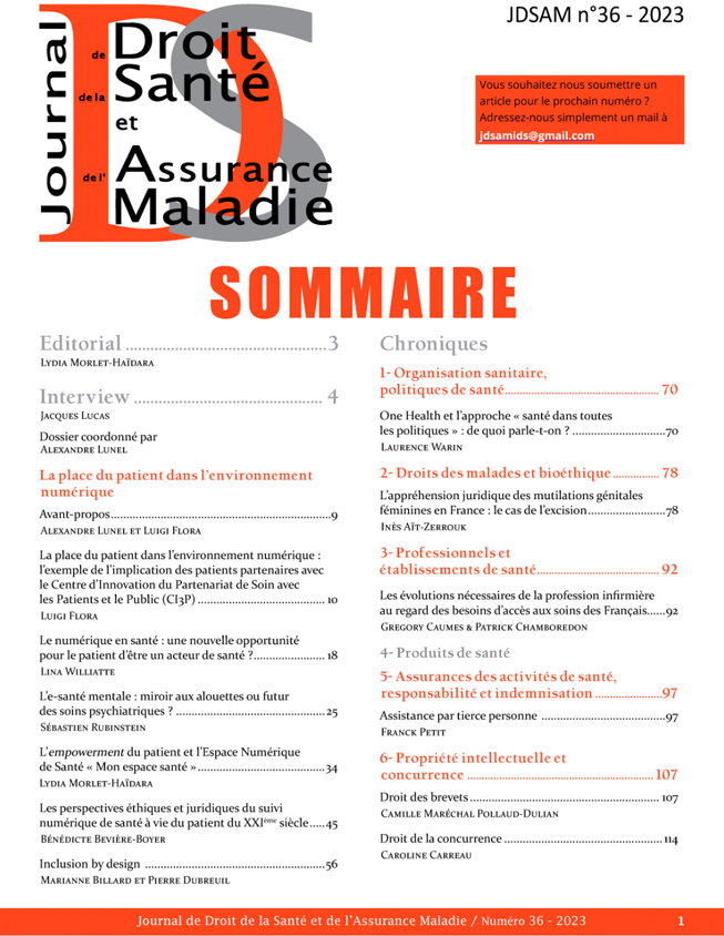 Le second colloque de 2022 a donné lieu à publication au journal du droit de la santé et de l’assurance maladie n°36.