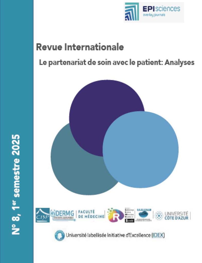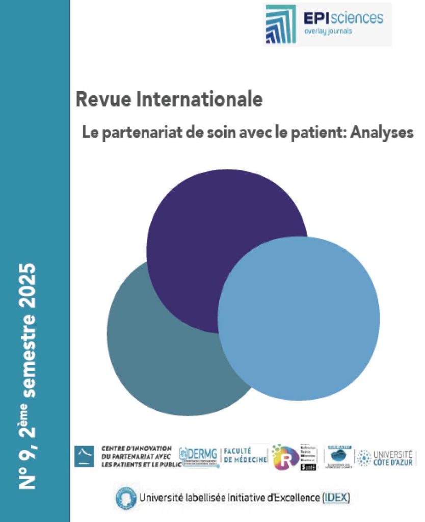 Cette revue semestrielle a été créée au printemps 2020 en prolongement du 1er colloque International sur le partenariat de soin avec le patient en France organisé à Nice par le Centre d’Innovation du partenariat avec les patients et le public et l’association Citoyenne Maison de la Médecine et de la Culture (MMC) à l’amphithéâtre du Galet de l’Hôpital Pasteur2 du CHU-GHT des Alpes-Maritimes et à la faculté de médecine de l’Université Nice Sophia-Antipolis devenue Université Côte d’Azur au 1er janvier 2020.